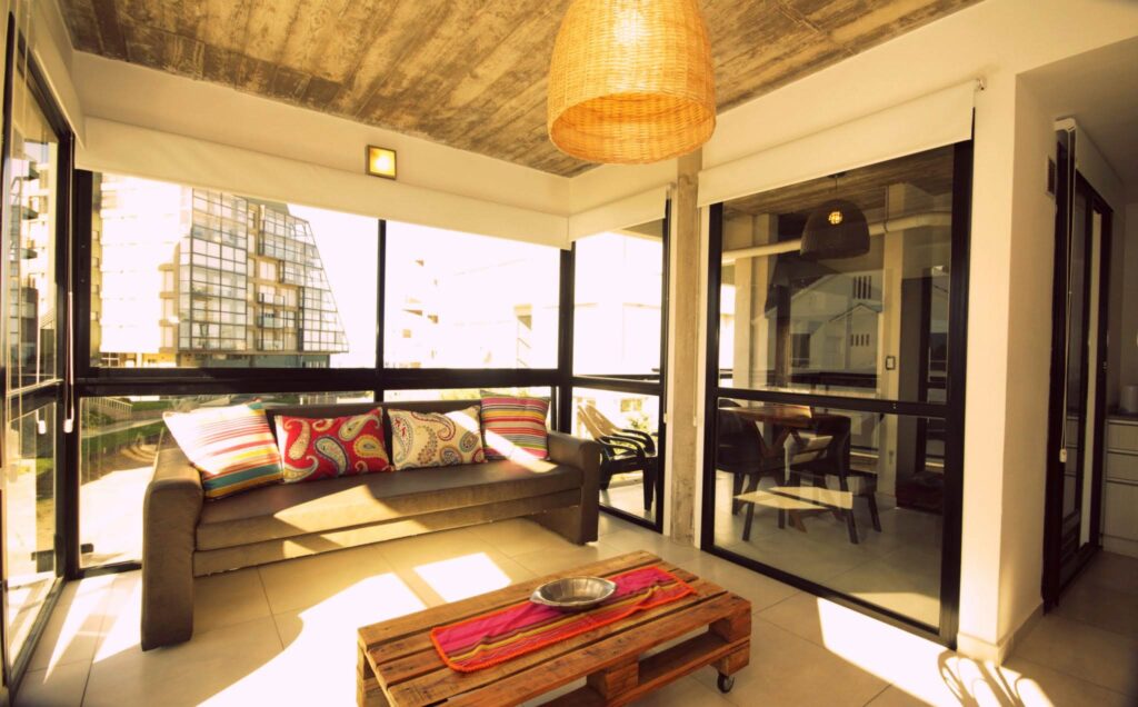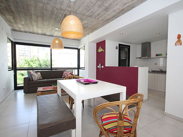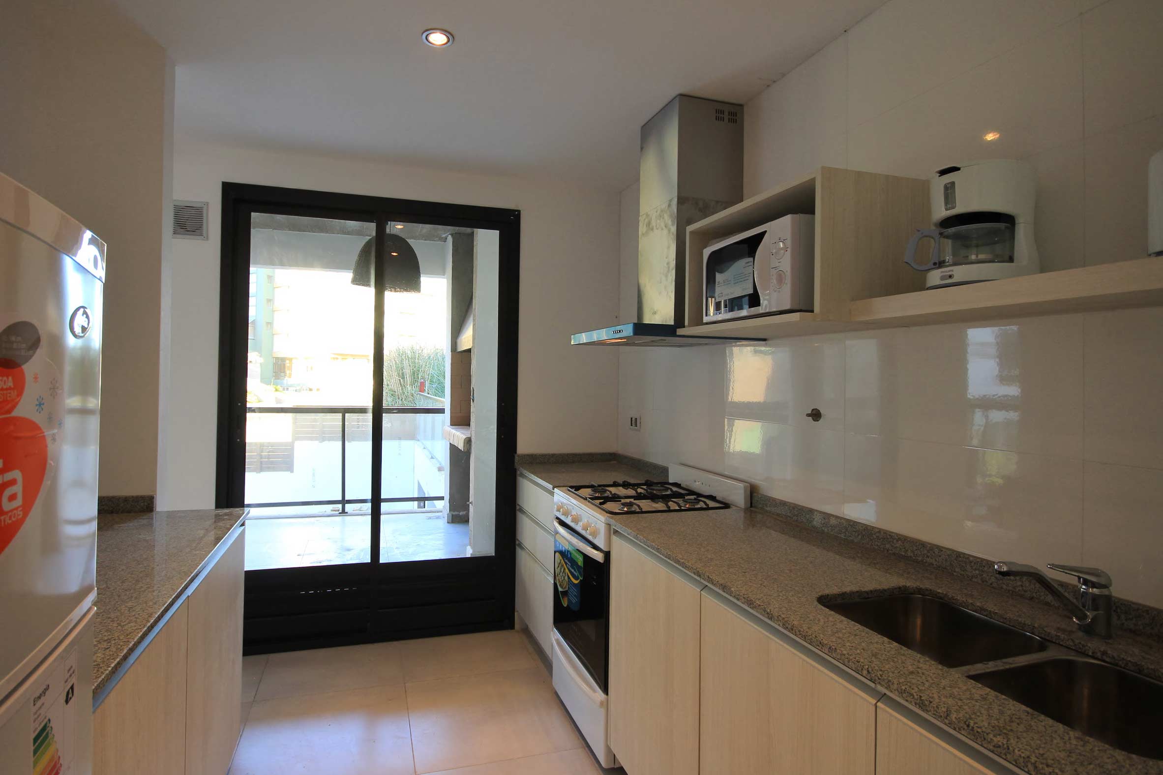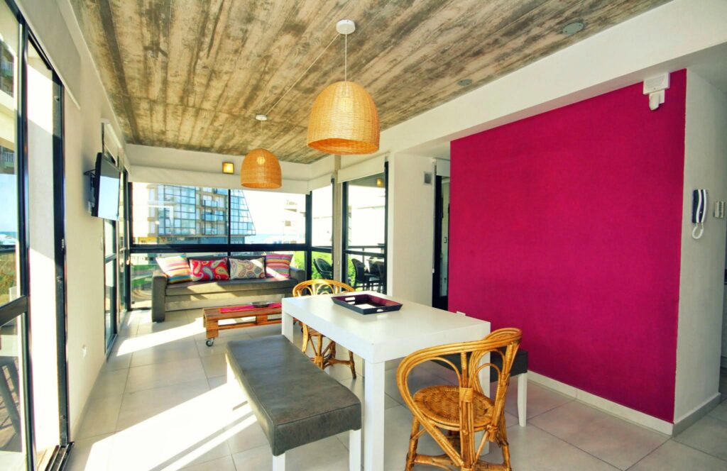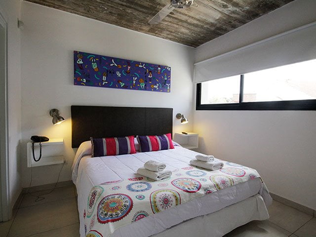 Apartamentos de categoría de 3 amb a 50m del mar, Equipado para 2/4/6 pax. Dormitorio principal en suite (baño, sommier de 2 plazas de 1,60 cm. de ancho) LCD y Ventilador de techo y caja de seguridad. Dormitorio con 2 camas de 1 plaza y un carrito (3 pax), Ventilador de techo. 1 baño con ducha. Living comedor (sofá cama 1/2 pax), LCD y aire acondicionado. Cocina, heladera con freezer, microondas, cocina con horno, cafetera y tostadora eléctrica y vajilla completa. Parrilla y balcón individual. Alarma. Cámaras de seguridad. Piscina. Solarium y losa radiante.